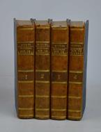 Quattro volumi di cm. 17, pp. xviii (6) 448; (8) 432; (8) 430 (2); (8) 438 (2). Solida legatura di poco posteriore in mezza pelle con punte, dorsi lisci con titoli e filetti in oro. Esemplare genuino e ben conservato.