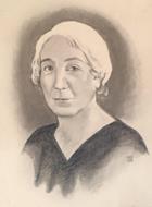 Ritratto a matita con firma in basso a destra.