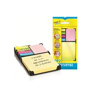 Pratico box da scrivania con 2 blocchetti adesivi di dimensioni differenti + 4 blocchetti di segnapagina.