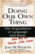 “McWhorter is a gifted young linguist who seeks to understand the change in our verbal habits rather than just bemoan it, and his analysis is insightful, richly documented and, yes, eloquently written.”—Steven Pinker, author of The Blank Slate and The Language Instinct In Doing Our Own Thing, critically acclaimed linguist and cultural critic John McWhorter traces the precipitous decline of language in contemporary America, arguing persuasively that casual everyday speech has conquered the formal in all arenas, from oratory to poetry to everyday journalism—and has even had dire consequences for our musical culture. McWhorter argues that the swift and startling change in written and oral communication emanated from the countercultural revolution of the 1960s and its ideology that established forms and formality were autocratic and artificial. While acknowledging that the evolution of language is, in and of itself, inevitable and often benign, he warns that the near-total loss of formal expression in America is unprecedented in modern history and has reached a crisis point in our culture such that our very ability to convey ideas and arguments effectively is gravely threatened. By turns compelling and harrowing, passionate and judicious, Doing Our Own Thing is required reading for all concerned about the state of our language—and the future of intellectual life in America.