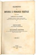 <p>Mm. 178x113. Pp. XXXII, 750. Con numerose illustrazioni in nero nel testo. C. lievemente brunita. Rilegato in mezza pelle coevo con titolo inciso in oro al dorso e tagli spruzzati in blu. Piatti e punte lievemente abrasi. Esemplare molto ben conservato. <strong>P</strong><strong>rima edizione italiana</strong> di quest'opera di Adriano Di Jussieu, professore di Botanica al Museo di Storia Naturale Membro dell'Istituto, della Facolt&agrave; delle Scienze di Parigi ecc.</p>