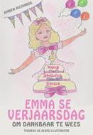 "My naam is Emma. Vandag is my verjaarsdag en ek is baie opgewonde! Ek is sewe jaar oud." Clarence Thomas het gesê dat "Goeie maniere sal deure oopmaak wat die beste onderwys nie kan nie.” Hierdie woorde spreek volumes, soos in vandag se uiteenlopende en veranderende samelewing word ons as individue geëvalueer, op wat ons weet en hoe ons ander se gevoelens beskou. As ouers is ons geneig om meer te fokus op ons kind se akademiese/fisiese vaardigheidsversameling. Partykeer vergeet ons dat emosionele volwassenheid ook baie balangrik is, selfs vir jong kinders. Hierdie emosionele vaardighede sal jou kind se vermoë om langdurige verhoudings met hulle vriende verbeter. Dit sal hulle ook in staat stel om in ‘n morele volwassene te groei. Lesse vir die lewe word gewoonlik geleer deur gebruik te maak van die mees eenvoudige gebeurtenisse binne die menslike ervaring. Hierdie boek fokus op hoe jou kind moet reageer wanneer hulle 'n geskenk ontvang wat hulle nie waardeer nie. "Emma se Verjaarsdag - Om Dankbaar te Wees" is vermaak en maklik om te lees. Ons kan almal baie van Emma leer, en ek sien uit daarna om haar storie met jou te deel.