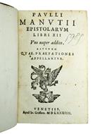 <p>8vo. (16), 536, (2), 128, (6) pp. a<sup>8</sup>, A-Z<sup>8</sup>, Aa-Tt<sup>8</sup>. <em>With the printer's device on the title-page</em>. Early eighteenth century calf, gilt spine with red morocco label, marbled endpapers, sprinkled edges. Old entry of ownership on the front fly-leaf: &ldquo;Odoardo Vercelli&rdquo;.</p> <p>Edit 16, CNCE 35382.</p> <p>&nbsp;</p> <p>AFTER Aldus the Younger's printing of 1580, Paolo Manuzio's letters were soon afterwards printed in various European cities, but in Italy the work was reprinted only six times until the end of the century. The first was Girolamo Polo in Venice in 1582 (and again in 1588). He was followed at Venice again by Giovanni Griffio in 1584, then by Tarino at Turin in 1587 and in 1595 by Farri at Venice. All these editions are mostly page by page reprints of the 1580 edition, with the exception of that edited by Enrico Farnese printed at Pavia by Viani in 1589.</p> <p>&nbsp;</p> <p>Paolo was the youngest son of Aldo Manuzio the Elder. He had the misfortune to lose his father at the age of two. After this event his grandfather and two uncles, the three Asolani, carried on the Aldine Press, while Paolo prosecuted his early studies at Venice. Excessive application hurt his health, which remained weak during the rest of his life. At the age of twenty-one he had acquired a solid reputation for scholarship and learning.</p> <p>In 1533 Paolo undertook the conduct of his father's business, which has latterly been much neglected by his uncles. Paolo determined to restore the glories of the house, and in 1540 he separated from his uncles. The field of Greek literature having been well night exhausted, he devoted himself principally to the Latin classics. He was a passionate Ciceronian, and perhaps his chief contributions to scholarship are the corrected editions of Cicero's letters