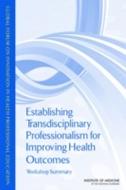 Establishing Transdisciplinary Professionalism for Improving Health Outcomes is a summary of a workshop convened by the Institute of Medicine Global Forum on Innovation in Health Professional Education to explore the possibility of whether different professions can come together and whether a dialogue with society on professionalism is possible. Most of the 59 members making up the Global Forum were present at the workshop and engaged with outside participants in active dialogue around issues related to professionalism and how the different professions might work effectively together and with society in creating a social contract. The structure of the workshop involved large plenary discussions, facilitated table conversations, and small-group breakout sessions. In this way, the members - representing multiple sectors, countries, health professions, and educational associations - had numerous opportunities to share their own perspectives on transdisciplinary professionalism as well as hear the opinions of subject matter experts and the general public. Efforts to improve patient care and population health are traditional tenets of all the health professions, as is a focus on professionalism. But in a time of rapidly changing environments and evolving technologies, health professionals and those who train them are being challenged to work beyond their traditional comfort zones, often in teams. A new professionalism might be a mechanism for achieving improved health outcomes by applying a transdisciplinary professionalism throughout health care and wellness that emphasizes crossdisciplinary responsibilities and accountability. Establishing Transdisciplinary Professionalism for Improving Health Outcomes discusses how shared understanding can be integrated into education and practice, ethical implications of and barriers to transdisciplinary professionalism, and the impact of an evolving professional context on patients, students, and others working within the health care system.