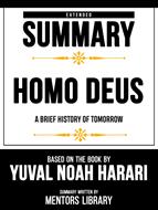 EXTENDED SUMMARY: HOMO DEUS – A BRIEF HISTORY OF TOMORROW – BASED ON THE BOOK BY YUVAL NOAH HARARI Are you ready to boost your knowledge about "HOMO DEUS"? Do you want to quickly and concisely learn the key lessons of this book? Are you ready to process the information of an entire book in just one reading of approximately 20 minutes? Would you like to have a deeper understanding of the techniques and exercises in the original book? Then this book is for you! BOOK CONTENT: The Evolutionary Leap From Sapiens to Homo Deus Gods in the Making Dataism Unveiled The Rise of the Algorithm The Religion of Data Biotechnological Frontiers Immortality in the Digital Age The Future of Consciousness The Algorithmic Society Challenges to Humanism New Divides: The Data Elite The Power of Artificial Intelligence Towards a Post-Human World Reflections on Homo Deus