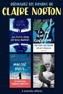 Cet ebook gratuit contient les premiers chapitres de chaque titre de Claire Norton, autrice de grands romans parmi les romancières françaises les plus populaires, à l'image d'Agnès Martin-Lugand ou d'Anne-Gaëlle Huon : Celle que je suis Ces petits riens qui nous animent... Malgré nous... En ton âme et conscience... Retrouvez ces quatre romans aux histoires sensibles et inoubliables chez votre libraire et en numérique. Accédez directement à chaque extrait par le sommaire.