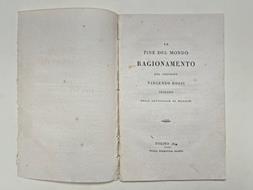In 16 (cm 13 x 20), pp. 33 + (1). Brossura rifatta con carta d'epoca. Discorso di natura teologica detto da Vincenzo Rossi canonica della Cattedrale di Mondovi'.