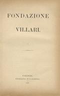 Fondazione Villari. (Manifesto del Comitato promotore - Elenco dei sottoscrittori - Le onoranze a Pasquale Villari: discorsi di P. Bargagli, A. Conti, G. Battelli, del Villari medesimo - Rendiconto - Statuto) - copertina