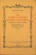 Le Forme Poetiche dei Greci e dei Romani. Compendio di Metrica Classica con riferimenti alla versificazione italiana per le scuole e per gli studiosi - Cesare Bione - copertina