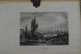 Sei volumi di cm. 26, pp. 3.500 ca. complessive. Con 4 tavole tecniche ed astronomiche rip. e molte tavole di vedute delle principali città (ciascuna protetta da velina). Il tutto nitidamente inciso in rame. Solida legatura coeva in mezza pelle verde, dorsi lisci con titoli e ricchi fregi romantici in oro. Poche, sporadiche fioriture, esemplare genuino e ben conservato.