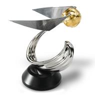 Riproduzione del boccino doro usato nelle gare di quidditch della serie Harry Potter. La riproduzione, curata nei dettagli, è composta di diecast placcato oro e argento e poggia su di una base in legno. Altezza 18 cm circa. '