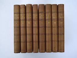 Otto volumi di cm. 22,5, pp. 4.000 ca. complessive. Legatura coeva in mezza pelle con ampie punte, dorsi a nervi con titoli in oro. Tagli superiori dorati; sguardie e piatti marmorizzati. Legatura firmata H. Wood. Qualche lieve fioritura marginale, peraltro perfetta conservazione, ad ampi margini e parz. a fogli chiusi. Ex libris Rodocanachi a ciascun volume. Affascinante esemplare di questa celebre opera che riporta le biografie dei pontefici romani dalle origini fino a Pio Sesto (cui è dedicato l'intero ottavo volume). L'autore, diplomatico e storico parigino, viene ricordato anche come traduttore di Dante.