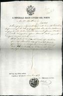 25x19 cm, 3 righe a stampa e 10 manoscritte con i nomi dei marinai morti nel naufragio. Stemma asburgico silografato, timbro e firma del Capitano di Porto