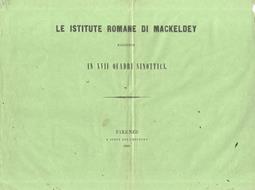 Firenze, a spese dell’editore, 1851, in-8 formato album, brossura editoriale (mancante per metà la copertina posteriore), pp. 24. Si tratta di frontespizio, cenni storici e 17 tavole a piena pagina contenenti quadri riassuntivi del diritto romano in tutte le sue branche, secondo la dottrina del tedesco Ferdinand Mackeldey. Piegato a metà per verticale.