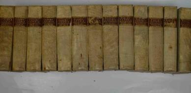 Ventisei parti legate in 13 volumi di cm. 24,5, pp. oltre 10.000 complessive. Bella vignetta a ciascun frontespizio, fini testate incisi in rame e finalini xilografici. Legature coeva in piena pergamena rigida, dorsi a piccoli nervi con titoli in oro su tasselli. Piccole mancanze a 2/3 tasselli, un'abile reintegrazione ad un piatto e qualche fioritura sparsa, peraltro esemplare ben conservato. Celeberrima e per certi versi insuperata opera storica, non comune a reperirsi completa di tutti i volumi come il presente esemplare.