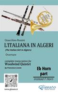 French Horn in Eb part of "L'Italiana in Algeri" (The Italian Girl in Algiers) overture from the opera by Gioacchino Rossini, complete transcription for Woodwind Quintet (Flute, Oboe, Bb Clarinet, French Horn in F and Bassoon - intermediate/advanced level) by Francesco Leone . Others parts and score available separately. Duration 8.00 min. _______________ "L'Italiana in Algeri" ouverture - Trascrizione per Quintetto di Fiati a cura di Francesco Leone. Parte di Corno in Mib.