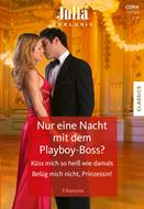 NUR EINE NACHT MIT DEM PLAYBOY-BOSS? und CAROL MARINELLI Der griechische Immobilienmagnat Luka Kargas ist ein notorischer Playboy – trotzdem fühlt Cecelia sich gegen jede Vernunft immer stärker zu ihm hingezogen. Höchste Zeit, ihren Job bei ihm zu kündigen! Doch ausgerechnet am letzten Tag wird sie schwach und lässt sich verführen … KÜSS MICH SO HEISS WIE DAMALS von THERESE BEHARRIE Fassungslosigkeit, Wut und heißes Verlangen! Als Selfmade-Millionär Wyatt Montgomery seine Ex-Frau Summer auf einer Party trifft, sind sofort die Gefühle von damals wieder da. Doch so sehr er sie begehrt, er darf nicht vergessen: Sie hat ihn einst aus heiterem Himmel verlassen! BELÜG MICH NICHT, PRINZESSIN! von CAITLIN CREWS Achilles Casilieris spürt es vom ersten Moment an: Nicht seine Assistentin sitzt mit ihm im Jet, sondern ihre Doppelgängerin Prinzessin Valentina! Dass sie ihn hemmungslos anlügt, ist eine Sache, aber dass die Schönheit ein nie gekanntes Verlangen in ihm weckt, eine ganz andere …