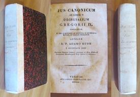 <div>Jus Canonicum ad Libros V - decretalium Gregorii IX - Explicatum et per questiones, ac responsa in methodum brevem, et claram redactum. Edit. Apud Haeredes Balleonios - Venetiis, 1843. Mezza pergamena con titolo al dorso. Lievissime e sporadiche fioriture in qualche pagina. 13x20; pp.XV + 526. Raro e in Ottimo stato.</div> . . . Ottimo (Fine). . . .