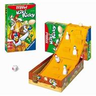Ravensburger presenta il classico successo Kiki Ricky in formato travel! Portalo con te in viaggio, il divertimento è assicurato! Un impertinente gallo ha occupato il nido in cima alla rampa e lancia delle uova per difendere il suo regno. Compito delle galline è quello di volare velocemente in alto per cacciare via il gallo pretenzioso. Vince chi arriva per primo in cima... Contenuto: 1 pista inclinata 4 galline 1 uovo 1 dado 1 libretto d'istruzioni. Gioco adatto ai bambini dai 4 anni in su. 2-4 partecipanti.