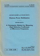 Klystron Power Stabilization - A Calorimetric Method for Measuring High Reflection Coefficients at Microwave Frequencies - Giovanni Giachino - copertina