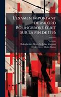 L'examen important de Milord Bolingbroke Ã(c)crit sur la fin de 1736