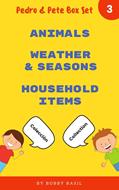 Teach your child Spanish with these 3 fun books and podcast! Pedro & Pete want to teach you Spanish! This elementary Spanish ebook for kids 3-8 is perfect for Preschool, Kindergarten, 1st, and 2nd graders or anyone who wants to learn a new language! ***Homeschool Friendly*** You can easily use all Pedro & Pete ebooks in your home classroom! Pedro & Pete books use multiple learning styles to teach Spanish: Listening (Auditory) The "Spanish to English" podcast episodes of these books on iTunes or Spotify let readers know how to correctly say the words in a native speaker's Spanish accent. Reading (Visual) Readers see how the words are spelled as they read along in the book while listening to the "Spanish to English" podcast episodes. ***Help your child become bilingual!*** This 3 ebook box set includes: "Animals" book "Weather & Seasons" book "Household Items" book Bright, full color pages Engaging content for learning Spanish, developing critical language skills, and having fun Simple, easy to read words that give children confidence and motivate them to learn more Fun cartoon kids teaching how to speak in Spanish and English Link for the "Spanish to English" podcast Buy the ebook and learn Spanish today!
