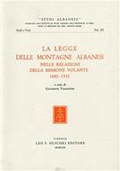 La legge delle montagne albanesi nelle relazioni della Missione Volante (1880-1932) - copertina
