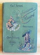 100 belle illustrazioni a colori n.t. diSchaefer. Editeur W. Hinrichsen - Paris,1889. Tela editoriale con lieve ondulazione in copertina e distacco della cartaalla cernieraanteriore ma libro ben legato. Piccola macchiolina di colore all'angolino basso esternodel frontespizio e qualche sporadica fioritura del tempo.16x23; pp.180. Una delle più originali e simpatiche interpretazioni del Robinson. Raro e in Buonissimo stato.