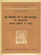 Les progres de la metaphysique en Allemagne depuis leibniz et Wolf