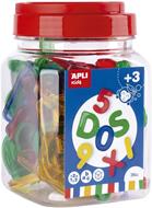 • Kit con 36 numeri e lettere in plastica trasparente in diversi colori: giallo, rosso, verde e blu.