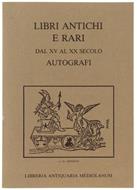 Titolo: LIBRI ANTICHI E RARI dal XV al XX secolo - Autografi. Catalogo 5. - Mediolanum Libreria Antiquaria. - Mediolanum, s.d. - 2000