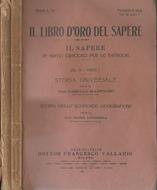 Il sapere in brevi trattati per le famiglie. Volume III, parte I e parte III. Volume III- parte I (1933): Storia universale per il Prof. Camillo Manfroni e Storia delle scoperte geografiche per il prof. Mario Longhena. Il volume parte dalla pagina numero 905 e fino alla 912 è di testo, con diverse illustrazioni. Dalla pagina 913 alla 944 indici alfabetici della storia universale e della storia delle scoperte geografiche. A seguire tavole sinottiche di storia universale, prontuario storico, numerate con numeri romani dall'I al CLXXII (1-172). Volume III-parte III (1929): Geografia-Africa per il Prof. Augusto Michieli, 208 pagine con diverse illustrazioni in bianco e nero nel testo. Per entrambi i volumi brossura con titoli solo al dorso, consumata dal tempo, con piccoli strappi al dorso e margini sfilacciati. Tagli ingialliti, pagine non ben rifilate ed anch'esse ingiallite.