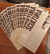 1976/1983. Lotto di 17 copie del notiziario edito dalla Galleria Stendhal 'Scultura', diretto da Eva Pollano. Il notiziario è mancante solo del n. 4 della rivista che per il resto fino al numero 20 si presenta completa. I numeri spaziano dal N.1 dell'Ottobre 1976 al N. 20 del 1983. Ciascun numero è riccamente illustrato e presenta interviste, servizi, e critiche relative al lavoro dei principali scultori italiani ed internazionali del dopoguerra, con testi in italiano, francese e inglese; cm 32x16. Presenza di alcuni ex-libris. Lievi segni del tempo. Condizioni ottime.