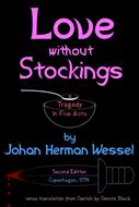 ¡¡ Reads best in color !! This is a verse translation from Danish of a parody of neoclassical tragedy by Norwegian Johan Herman Wessel entitled Kiærlighed uden Strømper, second edition (1774) – ie, with epilog – a masterpiece of Scandinavian literature. Look it up if you want, but the descriptions are all full of spoilers. Neoclassical tragedy was a century-old theatrical genre designed by a committee of Frenchmen. What could possibly go wrong. It was so overspec'd that the actors could barely move – no swooning, no eating, no stabbing, no soliloquies, not even any deus ex machina! Nonetheless, Louis XIV – aka the Sun King – and all his descendents – up until the guillotine cut them off – just loved it, as did everyone who was anyone in France during that past century, especially if they wanted to go on breathing. Because it said only nice things about royalty, the other royals of Europe all loved it too, as did their associated aristocracies, mercenaries, merchants, bishops, hangers-on and assorted other parasites. But not in the British Isles. After dominating the European royal stages for a century, it was long overdue for a good parody. Instead there arose a movement to create such plays in Danish and Norwegian – essentially different dialects of a single language. (Don't tell them I said that.) Fortunately this author lampooned it before it got started, thus sparing the northern kingdoms from an even greater tedium than winter solstice. You know it's really bad art when the parody becomes more famous than the original, at least in the lands where they can understand it. That's a problem because, even though it's supposed to be theatrical not poetic, the entire genre was written in alexandrines – ie, iambic hexameter couplet verse! How ya gonna translate that? So for the past quarter millennium, it's been the exclusive delight of the Scandinavians, except for a bad French translation, a really bad German translation and another French one not so much bad as execrable – all done back when the genre was still dying, not yet dead. Here's how he did it. Wessel obeyed enough of the rules to make clear what he was lampooning, then broke as many of the rest as he could within just five acts, even doubled the length of the final act to allow time to break several more. Effectively, he dropped Holberg-style commoners onto the royal stage, compelled them to put on tragic airs and speak in alexandrines, and otherwise turned them loose with no hint as to the quantity of French thespian glassware out there just begging to be shattered every time they in any way behaved like real people. Then, to screw things up royally, he also parodied the other imported theatrical genre, Italian opera, by throwing in several spoofs of arias, which were of course also forbidden from the French genre – 2 for 1. If anyone in France had done what Wessel did, but in French, they would have been looking at serious jail time – make that dungeon time. But he was safe up in Copenhagen, right? No, it was still kind of a gutsy thing to do, since they had recently held a palace coup where the losers were publicly executed and the pieces stuck up on the city wall for the birds to peck at. Oh, and the king was insane. That was one royal court that you really didn't wanna mess with. But Wessel had courage – or at least recklessness – and talent, and style.