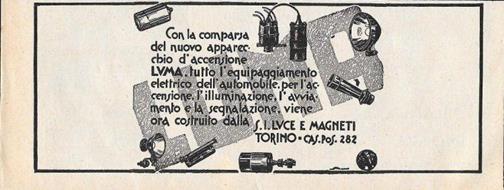 LUMA apparecchi d'accensione per automobili. Advertising 1928