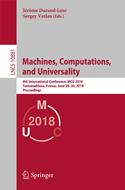 This book constitutes the refereed proceedings of the 8th International Conference on Machines, Computations, and Universality, MCU 2018, held in Fontainebleau, France, in June 2018. The 9 revised full papers presented together with 5 invited talks were carefully reviewed and selected from numerous submissions. MCU explores computation in the setting of various discrete models (Turing machines, register machines, cellular automata, tile assembly systems, rewriting systems, molecular computing models, neural models, concurrent systems, etc.) and analog and hybrid models (BSS machines, infinite time cellular automata, real machines, quantum computing, etc.).