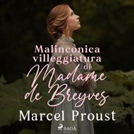 "Malinconica villeggiatura di Madame de Breyves" è un racconto giovanile di Proust, incentrato sull'amore. Ma non si tratta, qui, di quel sentimento gratificante che si potrebbe pensare: l'amore di cui ci parla l'autore, piuttosto, è una malattia dell'animo, un'entità aliena che si impossessa dell'individuo, senza lasciargli alcuna scelta. Madame de Breyves si innamora di un uomo che stima assolutamente insignificante, e del quale fa pure fatica a ricordare i tratti del viso. La sua infatuazione per Monsieur de Lalèande, pur essendole totalmente incomprensibile, sembra accrescersi in parallelo con l'incapacità di quest'ultimo di comprendere tale sentimento. Un racconto dalla potenza straordinaria, che si incunea nella coscienza di chi legge proprio come il terribile amore della protagonista per de Lalèande… Questo audiolibro è stato realizzato in collaborazione con Edizioni Clichy.