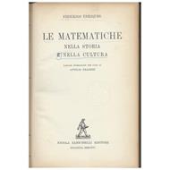 In 16, cart., cop. muta, tassello di colore verde con tit. e autore in oro al dorso, pp. 339 con formule matematiche n.t. e ill. in n. f.t. Strappetto con mancanza al piede del dorso, piccola lacerazione alla testa della cerniera e del capitello del piatto post., leggera abrasione agli angoli dei piatti, distacco all'angolo inf. sin. del tassello, brunitura fattore tempo ai tagli e al margine delle carte, sottolineature di colore blu al tit. del frontespizio, rari segni a matita al margine del testo, sottolineature in due pp., alone giallo al margine delle ill., buone condizioni.Luogo di pubblicazione BolognaEditore ZanichelliAnno pubblicazione 1938Materia/Argomento Matematica, Storia