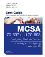 This is the eBook version of the print title. Note that the eBook might not provide access to the practice test software that accompanies the print book. Learn, prepare, and practice for MCSA 70-697 and 70-698 exam success with this Cert Guide from Pearson IT Certification, a leader in IT certification. Master MCSA 70-697 and 70-698 exam topics Assess your knowledge with chapter-ending quizzes Review key concepts with exam preparation tasks MCSA 70-697 and 70-698 Cert Guide is a best-of-breed exam study guide. Technical consultants Don Poulton, Harry Holt, and Randy Bellet share preparation hints and test-taking tips, helping you identify areas of weakness and improve both your conceptual knowledge and hands-on skills. Material is presented in a concise manner, focusing on increasing your understanding and retention of exam topics. The book presents you with an organized test preparation routine through the use of proven series elements and techniques. Exam topic lists make referencing easy. Chapter-ending Exam Preparation Tasks help you drill on key concepts you must know thoroughly. Review questions help you assess your knowledge, and a final preparation chapter guides you through tools and resources to help you craft your final study plan. Well regarded for its level of detail, assessment features, and challenging review questions and exercises, this study guide helps you master the concepts and techniques that will enable you to succeed on the exam the first time. The study guide helps you master all the topics on the MCSA 70-697 exam, "Configuring Windows Devices," and the MCSA 70-698 exam, "Installing and Configuring Windows 10": all the knowledge you need to earn MCSA: Windows 10 certification. Topics include Exam 70-697: · Managing identity · Planning desktop and device deployment · Planning and implementing a Microsoft Intune device management solution · Configuring networking and storage · Managing data access and protection · Managing remote access, apps, updates, and recovery Exam 70-698: · Implementing Windows · Configuring and supporting core services · Managing and maintaining Windows