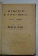 Cm. 18, pp. 285 (3). Bross. muta posteriore. Buona conservazione. Si tratta della prima parte (ma unica pubblicata) di queste memorie parzialmente autobiografiche sul Risorgimento lombardo dell'Arrighi grande scapigliato (Milano, 1830 - ivi, 1906). Cfr. Parenti, Rarità (III, 162): "Molto rara".