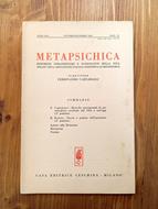 ''Metapsichica. Fenomeni straordinari e sconosciuti della vita'', organo della Associazione Italiana Scientifica di Metapsichica. Rivista fondata e diretta da Ferdinando Cazzamalli - Brossura editoriale, pagine numerate da 209 a 280. Poche tenui fioriture alla copertina, peraltro ottima copia -- SOMMARIO: F. CAZZAMALLI: Ricerche sperimentali di psicobiofisica cerebrale dal 1924 a tutt'oggi (3^ puntata) - R. PAVESE: Teoria e pratica dell'ipnotismo (4^ puntata) - Lettere alla Direzione - Recensioni - Notizie.