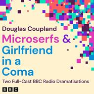 Coupland's iconic novels brought to life in two full-cast adaptations Bursting onto the literary scene in 1991 with his debut Generation X, Douglas Coupland's novels swiftly established themselves as modern classics and brought the term 'Gen X' into the mainstream. His work still has resonance in today's world, with his vivid explorations of identity and creativity in the post-Baby Boomer generations. These pitch perfect adaptions probe our modern popular culture, with the author's signature wry twists and unsettling revelations. In this brand new adaptation by Theo Toksvig-Stewart, Douglas Coupland's brilliantly funny novel Microserfs takes a microscope to working culture in the early days of the tech boom. Dan is a Microsoft employee in desperate need of 'a life'. His world can be summed up as eat, sleep, code, repeat, and he's not quite feeling himself. So when the chance comes along for him and his friends to leave Microsoft to form a Silicon Valley start-up called OOP!, will they take the risk and leap into the unknown? In an unflinching and hilarious story, Dan and the other Microserfs try to find purpose, love and identity in the real world. Perhaps one of Coupland's most iconic novels, Girlfriend in a Coma begins in December 1979 when 17-year-old Karen unexpectedly falls into a deep coma after a teen house party. Frighteningly, she'd predicted the end of the world in a letter sent to her boyfriend before she collapsed. Fifteen years later, Karen wakes up. The world in 1997 is a very different and confusing place. Her friends have grown up and their reality bears little resemblance to the hopes and dreams they shared in their youth. There are questions that need to be answered, time is running out and Karen must act. Available as a double bill for the first time, these stunning adaptations are a fantastic listen. Performed by a full cast with production by Sony award-winning producer Dan Rebellato, these stories make for a stellar audio experience not to be missed. Cast and credits Microserfs Written by Douglas Coupland Dramatised by Theo Toksvig-Stewart Directed by Anne Isger Production Co-ordination by Luke MacGregor Sound by Cal Knightley, Pete Ringrose, David Gregory, Billy Godfrey Dan - Will Merrick Karla - Samantha Dakin Bug - Matthew Needham Michael - Freddie Meredith Todd - Chris Lew Kum Hoi Susan - Chloë Sommer Abe - Hughie O'Donnell Ethan - Tom Kiteley Dan's Mum - Joanna Monro Dan's Dad - Roger Ringrose Dusty - Fiona Skinner Amy - Grace Saif First Broadcast BBC Radio 4, 27 November 2022 Girlfriend in a Coma Written by Douglas Coupland Dramatised by Dan Rebellato Produced by Polly Thomas Music by Alice Trueman Sound Design by Steve Brooke Jared - Florian Hutter Karen - Rayisa Kondracki Wendy - Maggie Blake Richard - Jason Durran Hamilton - Simon Lee Phillips Pamela - Heather Dann Doctor - Peter Marinker Megan - Julia Summer Gloria - Buffy Davis First Broadcast BBC Radio 3, 24 February 2008 ©2023 BBC Studios Distribution Ltd (P)2023 BBC Studios Distribution Ltd
