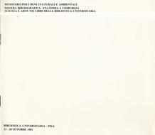 Catalogo in occasione del Congresso di Anatomia della Biblioteca Universitaria di Pisa, svoltosi dal 12 al 20 ottobre 1981 a cura del Ministero per i Beni Culturali e Ambientali. Fascicolo lievemente brunito dal tempo, con calcoli a penna nera al risguard