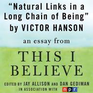 Professor of Classics Victor Davis Hanson contemplates the continuity of generations in "Natural Links in a Long Chain of Being", his contribution to NPR’s This I Believe series. This I Believe is a National Public Radio program that features Americans, from the famous to the unknown, completing the thought that begins with the series title. The pieces that make up the program compel listeners to re-think not only what and how they have arrived at their own personal beliefs, but also the extent to which they share them with others. Featuring a star-studded list of contributors that includes John McCain, Isabel Allende, and Colin Powell, as well as pieces from the original 1950's series including Helen Keller and Jackie Robinson, the This I Believe collection also contains essays by a Brooklyn lawyer, a woman who sells yellow pages advertising in Fort Worth, and a man who serves on the state of Rhode Island's parole board. The result is a stirring, funny and always provocative trip inside the minds and hearts of a diverse group of Americans whose beliefs, and the incredibly varied ways in which they choose to express them, reveal the American spirit at its best. This short audio essay is an excerpt from the audiobook edition of the This I Believe anthology.