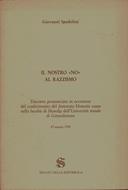 Il nostro \NO\" al razzismo. Discorso pronunciato in occasione del conferimento del dottorato Honoris causa nella Facoltà di Filosofia dell'Università Statale di Gerusalemme-23 marzo 1992" - Giovanni Spadolini - copertina