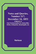 Notes and Queries, Number 217, December 24, 1853; A Medium of Inter-communication for Literary Men, Artists, Antiquaries, Geneologists, etc. - Various - cover