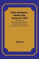 Notes and Queries, Number 220, January 14, 1854; A Medium of Inter-communication for Literary Men, Artists, Antiquaries, Geneologists, etc. - Various - cover