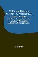 Notes and Queries, Vol. V, Number 133, May 15, 1852; A Medium of Inter-communication for Literary Men, Artists, Antiquaries, Genealogists, etc. - Various - cover