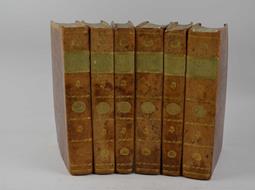 Sette parti in sei volumi di cm. 20 e così suddivisi: Tomo primo: pp. 42 (4) 141 (3) 142 (2) 39 (1) con 57 tavole fuori testo di cui 4 ripiegate, oltre a 11 tavole a piena pagina nel testo e due piccole illustrazioni. Tomo secondo: pp. (8) 86 (2) 302 (2) con 7 carte di tavole fuori testo. Tomo terzo: pp. (8) 318 + 1cb. Tomo quarto: pp. (24) 467 (1) con due ritratti (di Antonio Vallisnieri e Francesco Redi). Tomo quinto: pp. (24) 319 (1) con un frontespizio illustrato. Tomo sesto: pp. (28) 339 (1) con un frontespizio illustrato. Tomo settimo: pp. (12) 148 (4) 64 con 2 frontespizi illustrati. Solida legatura ed elegante legatura ottocentesca in mezza pelle con punte, dorsi lisci con fregi in oro e titoli su doppi tasselli verdi. Esemplare fresco ed in ottimo stato di conservazione. Come spesso accade per quest’opera i volumi portano menzione di diverse edizioni; nel nostro caso i primi tre volumi appartengono alla seconda edizione corretta (del 1742) mentre i rimanenti sono della prima (1728-30). L’affascinante parte iconografica, oltre che dalle succitate tavole è formata da testate e capolettera, il tutto finemente incise in rame. Precedono la vita e le lodi al Redi di Anton Maria Salvini. Cfr. Prandi, 185; Gamba 836 e Piantanida, 1758.