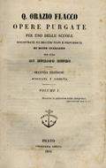 Opere purgate per uso delle scuole, riscontrate sui migliori testi e provvedute di note italiane per cura di Enrico Bindi. Seconda edizione aumentata e corretta. Volume I - Volume II - Q. Flacco Orazio - copertina
